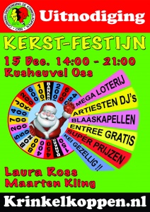 15 december dan is het weer zover. Het is de dag dat PCV de Krinkelkoppen haar Kerstfestijn organiseert. Al nareis dit druk bezochte prijzenfestijn een groot succes. De grote loterij is het middelpunt van de dag, Met daar omheen wat blaaskapellen, Maarten Kling en Laura Ross (Bekend van SBS6 Bloed zweet en tranen) en veel kerstsfeer, kerstbrood en glühwein.