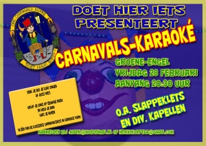 Waar een klein klupke groot in kan zijn. Al jaren gaat er bij de leden van Doe Hier Iets op de vrijdag voor carnaval helemaal mis. Prettig mis, dat wel! Slappe klets da is ut! en verder heel gezellig en om niet te missen. Dit jaar is er óók nog Carnavals Karaoke! Oss op zunne kop!